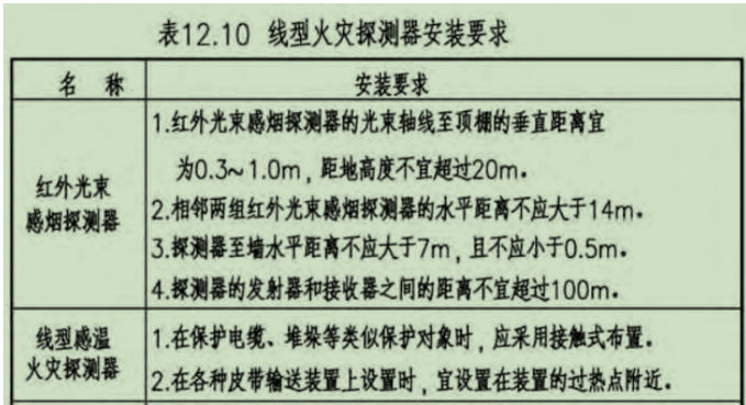 6.2.4 在宽度小于 3m 的内走道顶棚上设置点型探测器时,宜居中布置。感温火灾探测器的安装间距不应超过 10m ; 感烟火灾探测器的安装间距不应超过 15m ;探测器至端墙的距离,不应大于探测器安装间距的 1/2 。