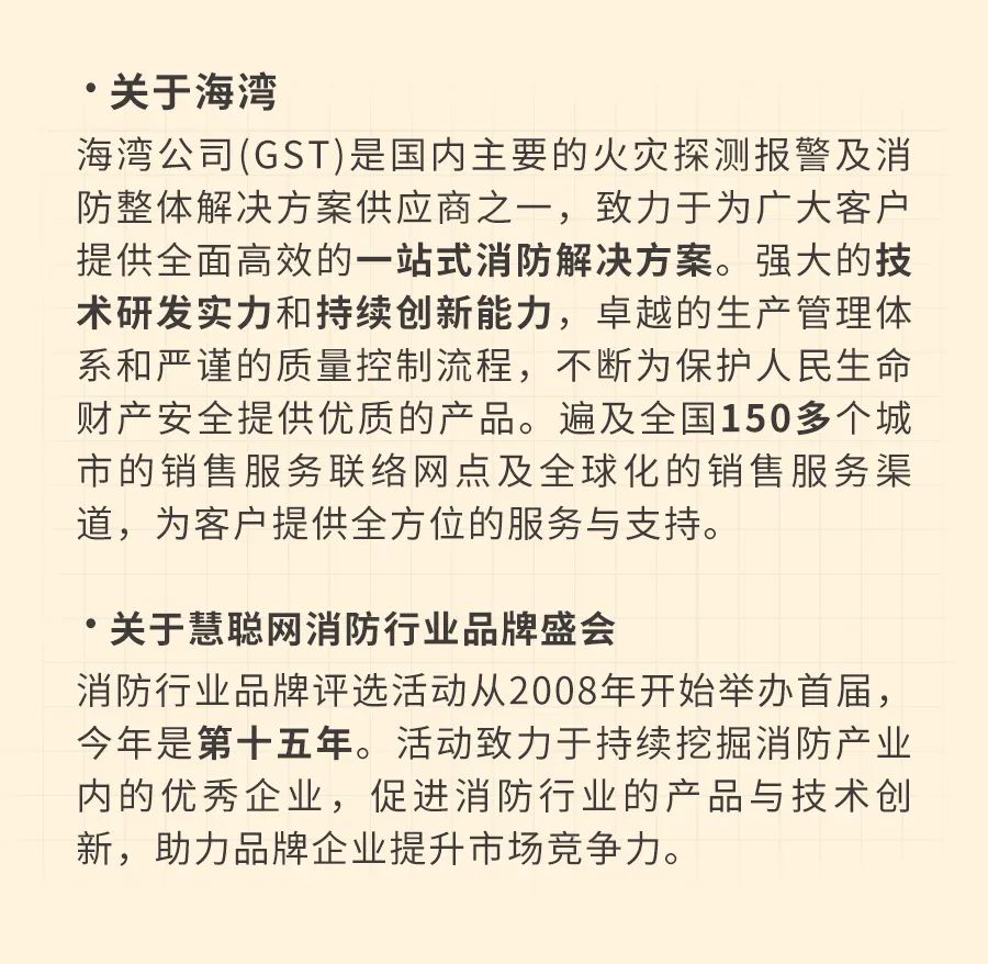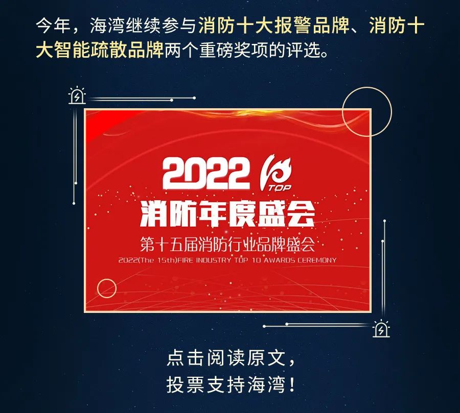 今年,辽宁海湾继续参与消防十大报警品牌、消防十大智能疏散品牌两个重磅奖项的评选。